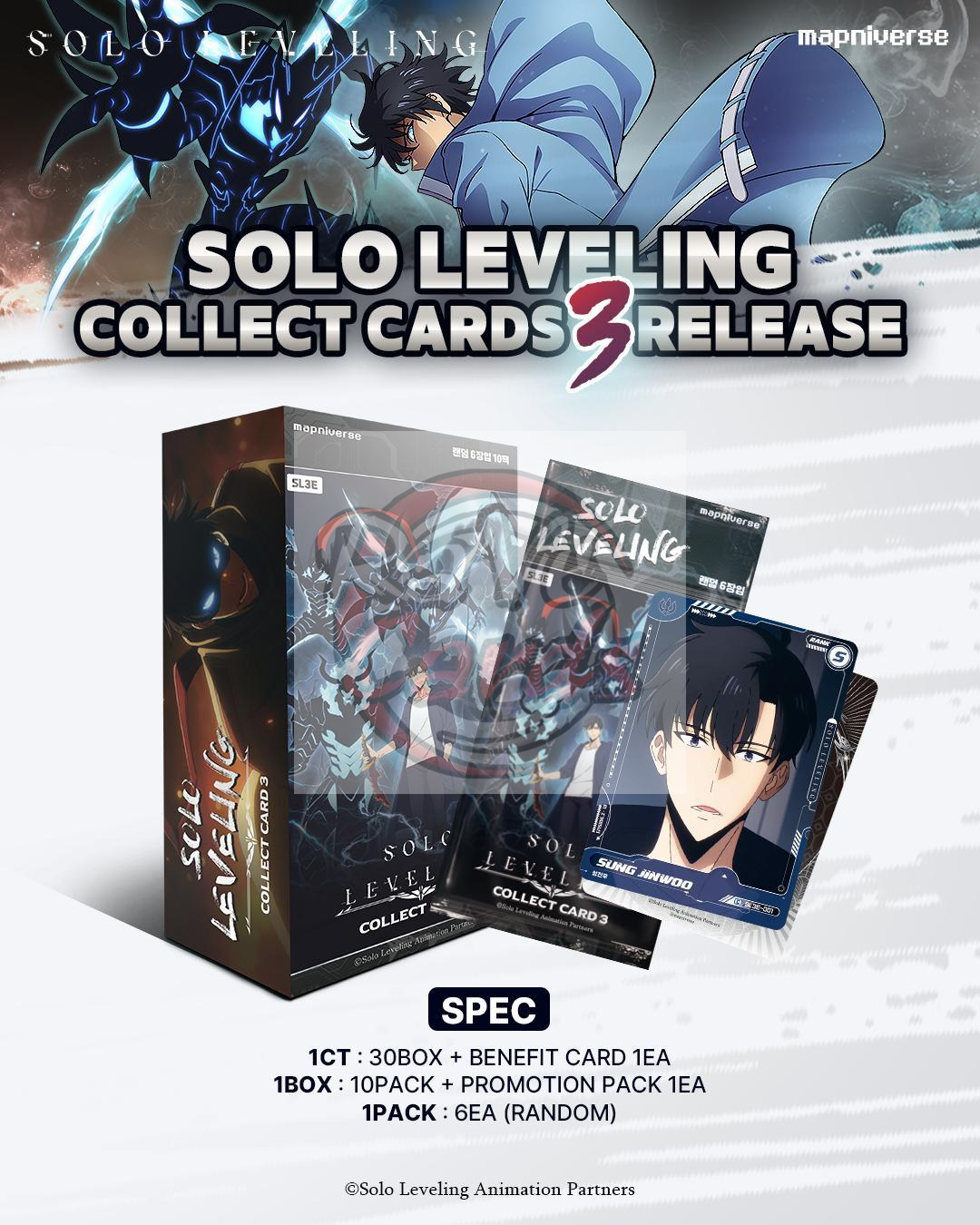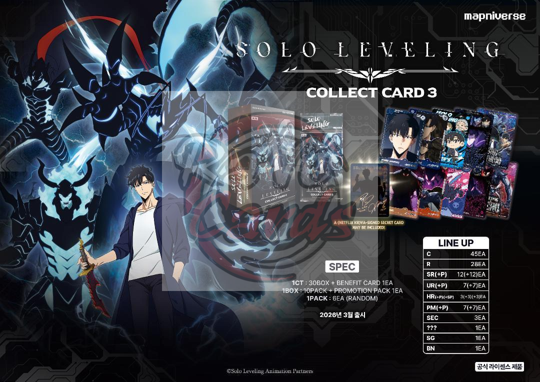Das Solo Leveling Volume 3 Booster Display von Mapniverse erweitert die Sammelkartenserie rund um den beliebten Anime Solo Leveling. Die Serie präsentiert eindrucksvolle Illustrationen mit Charakteren und Szenen aus der Welt von Sung Jin-Woo und seiner Shadow Army.