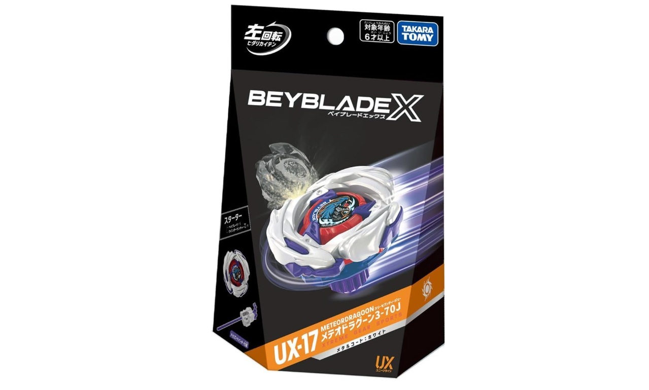 Der UX-17 Starter „Meteor Dragoon 3-70J“ ist ein Starter-Set aus der BEYBLADE X-Serie und enthält neben dem kompletten Beyblade auch einen passenden Launcher für den direkten Spielstart. Meteor Dragoon kombiniert eine ausgewogene Konstruktion mit stabiler Performance und eignet sich für vielseitige Einsatzmöglichkeiten im Stadion.