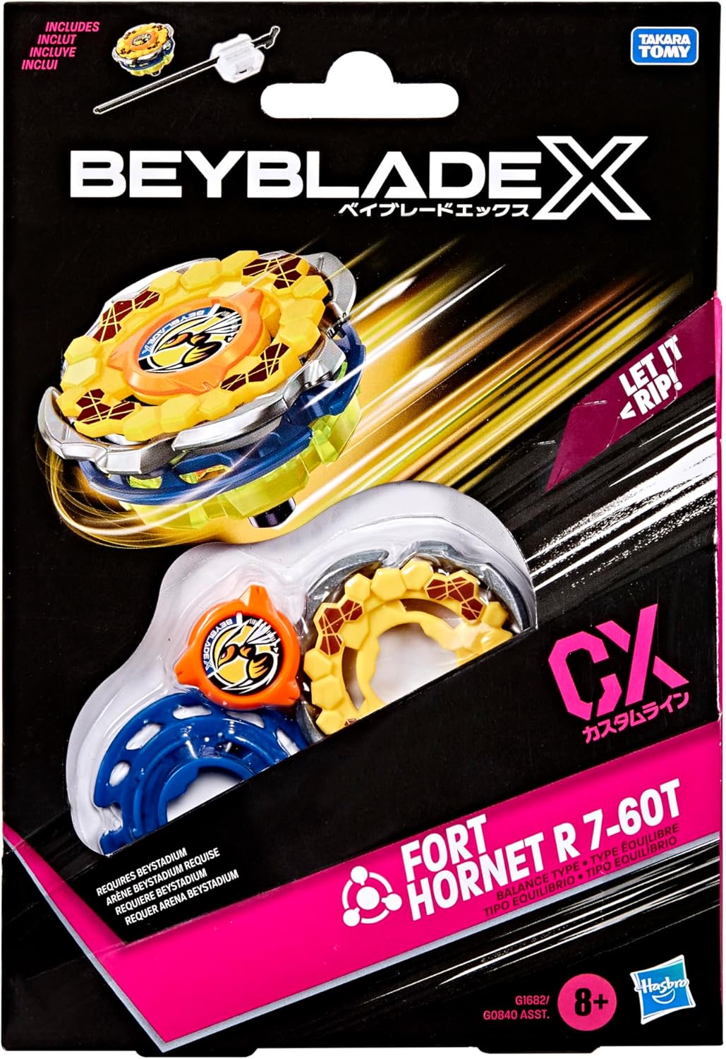 - FORT HORNET R 7-60T CX RECHTSDREHENDER BALANCE-TYP MIT BALANCE-TYP BLADE: Enthält einen Beyblade X Starter und einen Kreisel im Takara Tomy Design mit authentischen Teilen aus Metall