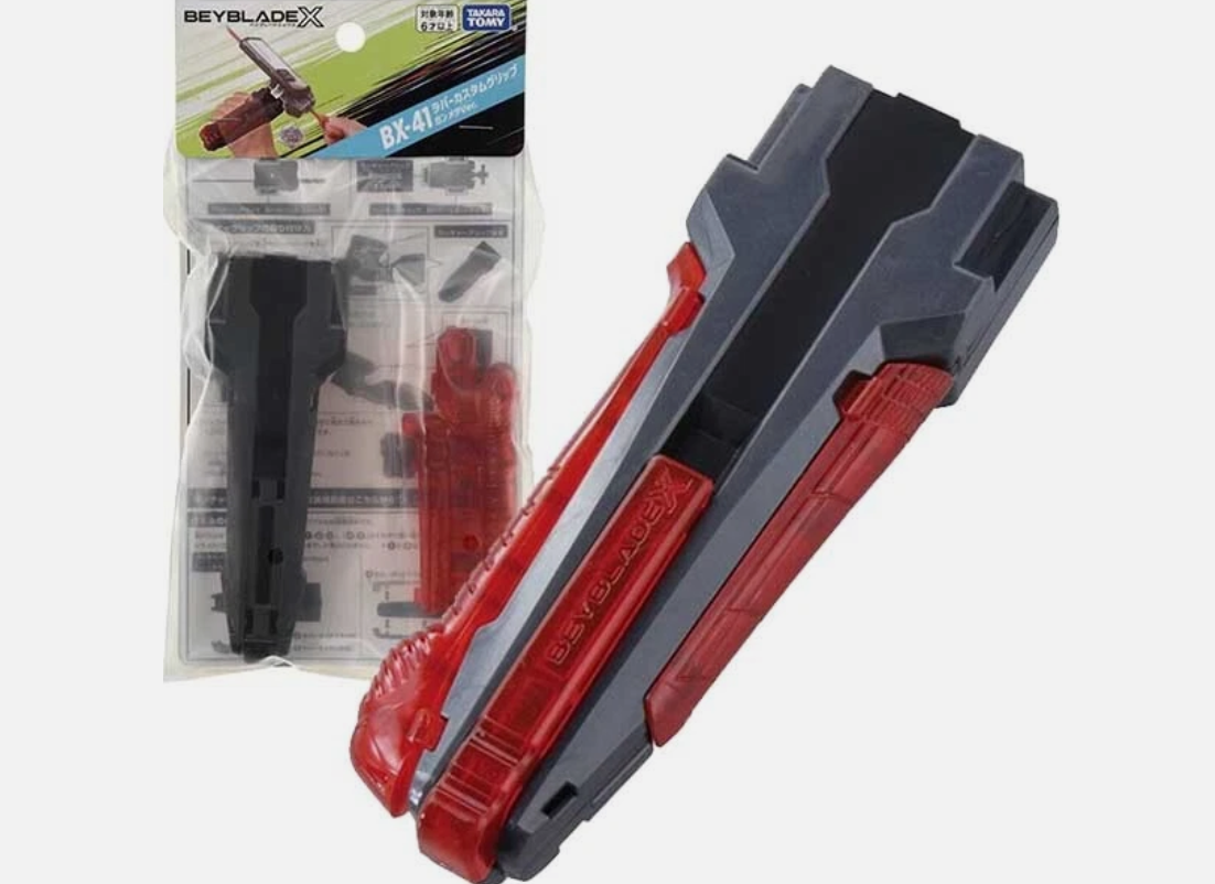Der Beyblade X BX-41 Rubber Custom Grip (Gunmetal Version) von Takara Tomy ist ein Zubehörteil für Beyblade X Launcher. Der Grip wird am Launcher befestigt und sorgt für eine deutlich stabilere Handhabung beim Starten der Beyblades.