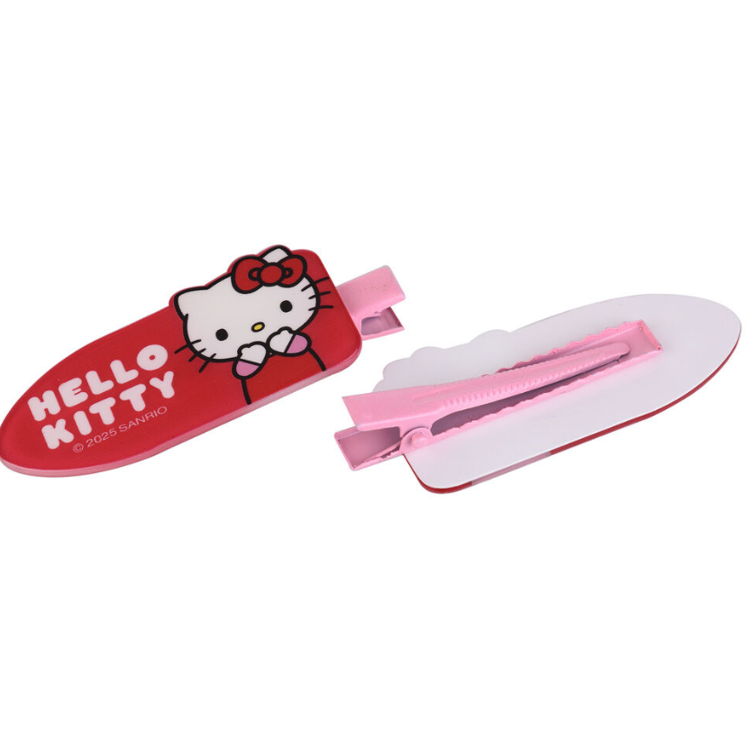 Das Hello Kitty Hair Clips 2er-Set ist ein süßes und praktisches Haaraccessoire für den Alltag. Die Haarspangen zeigen das beliebte Hello-Kitty-Design und eignen sich ideal zum Fixieren von Haarsträhnen oder als dekoratives Detail für Frisuren.